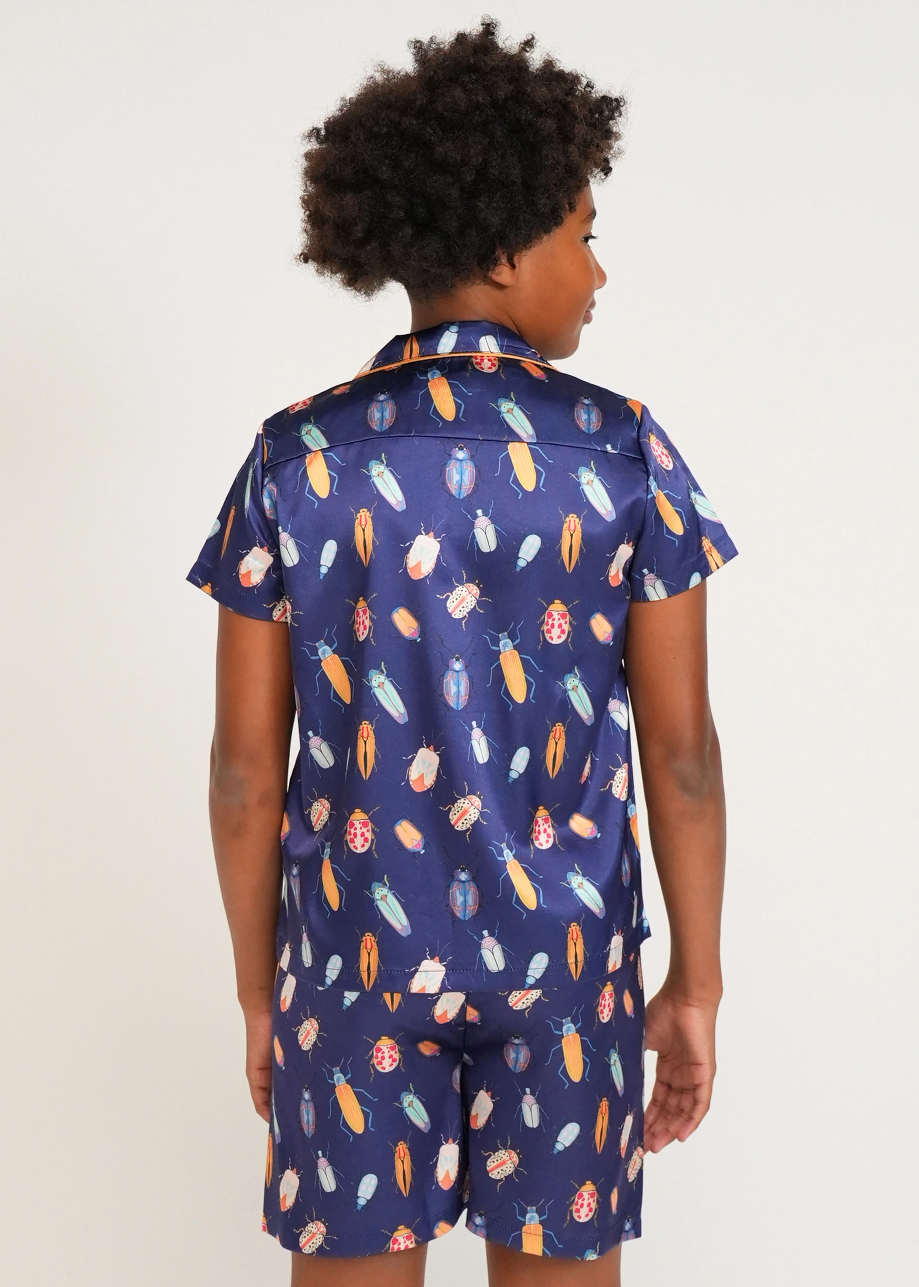 Boys - Beetles Navy Satin Short PJ Set