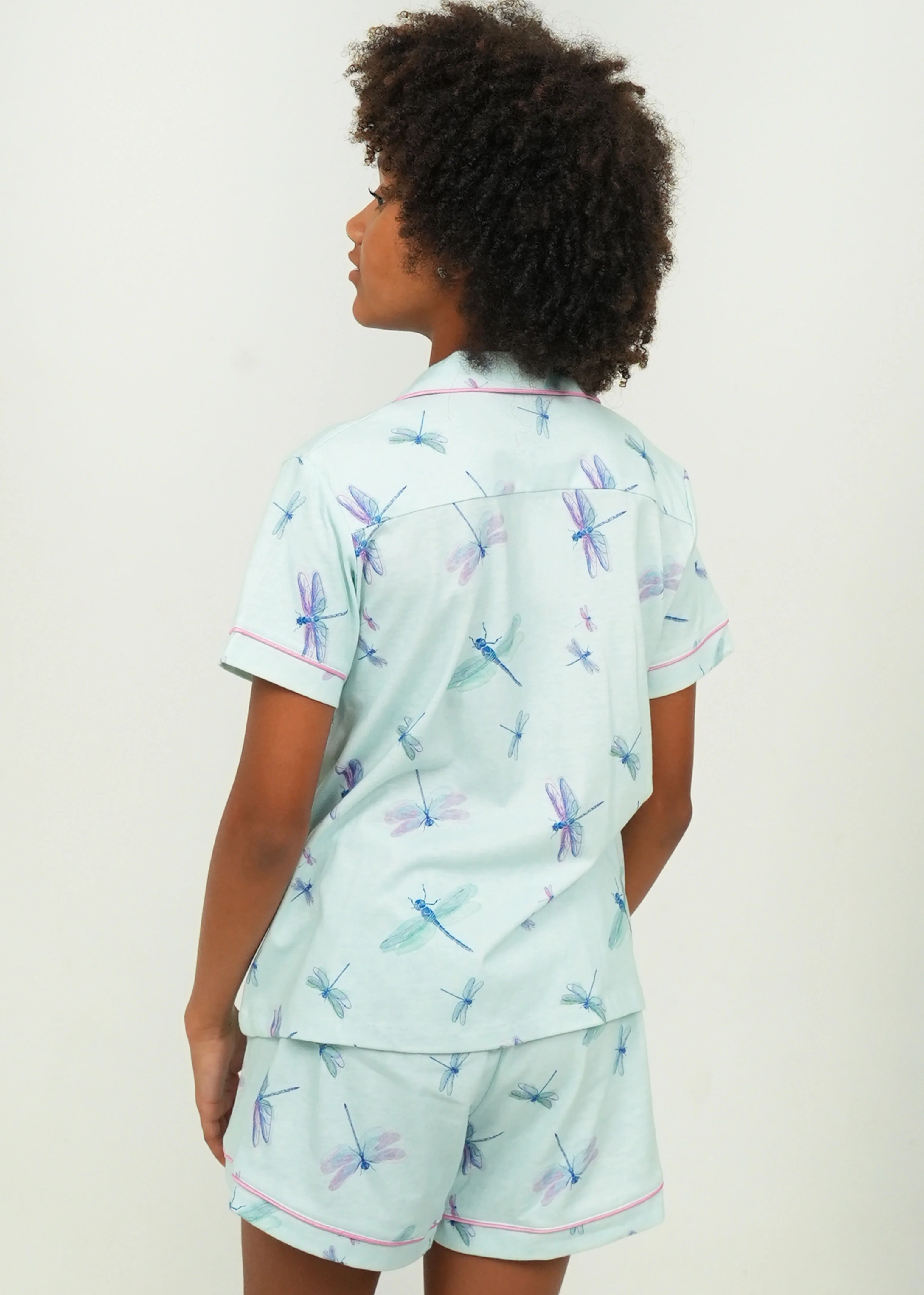 Girls - Aqua Dragonflies Short Jersey Knit Cotton PJ Set