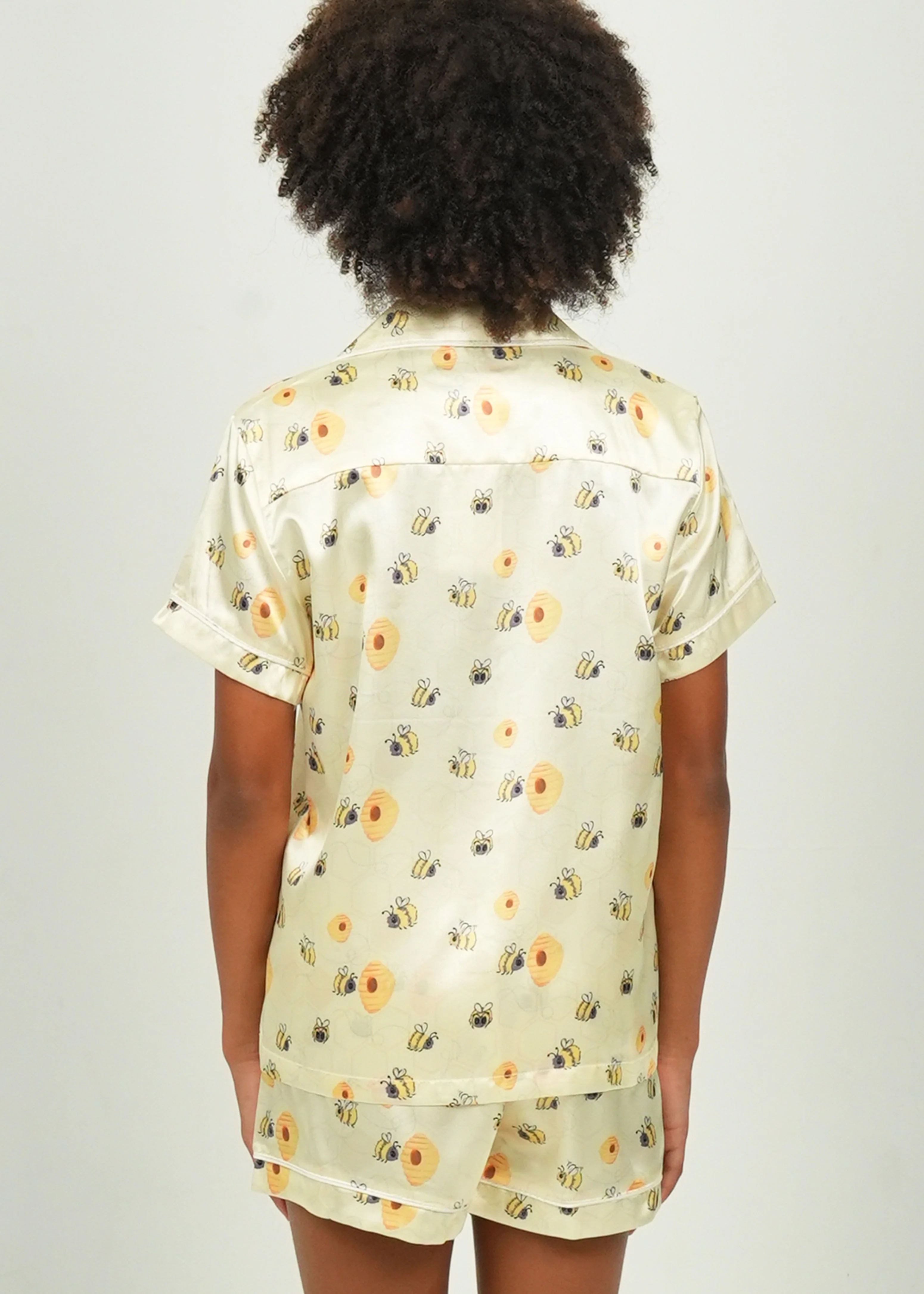 Girls - Yellow Bumble Bees Satin Short PJ Set