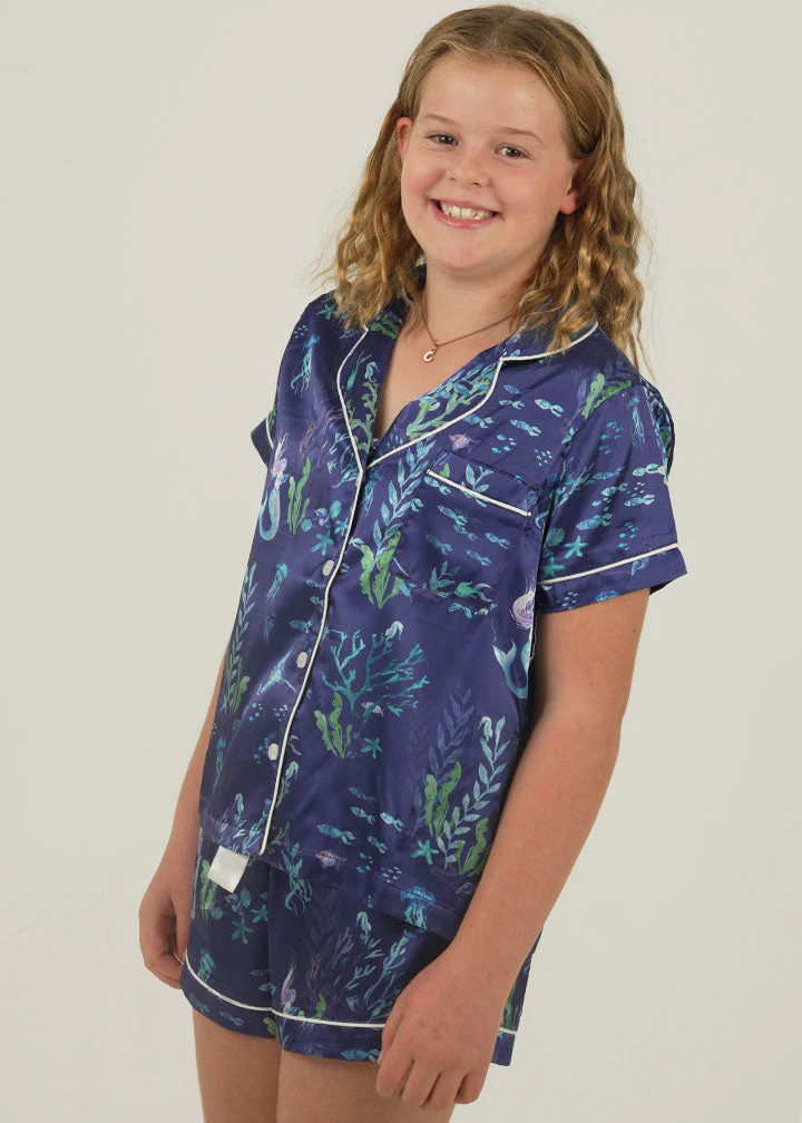 Girls Deep Sea Satin Short Pajama Set