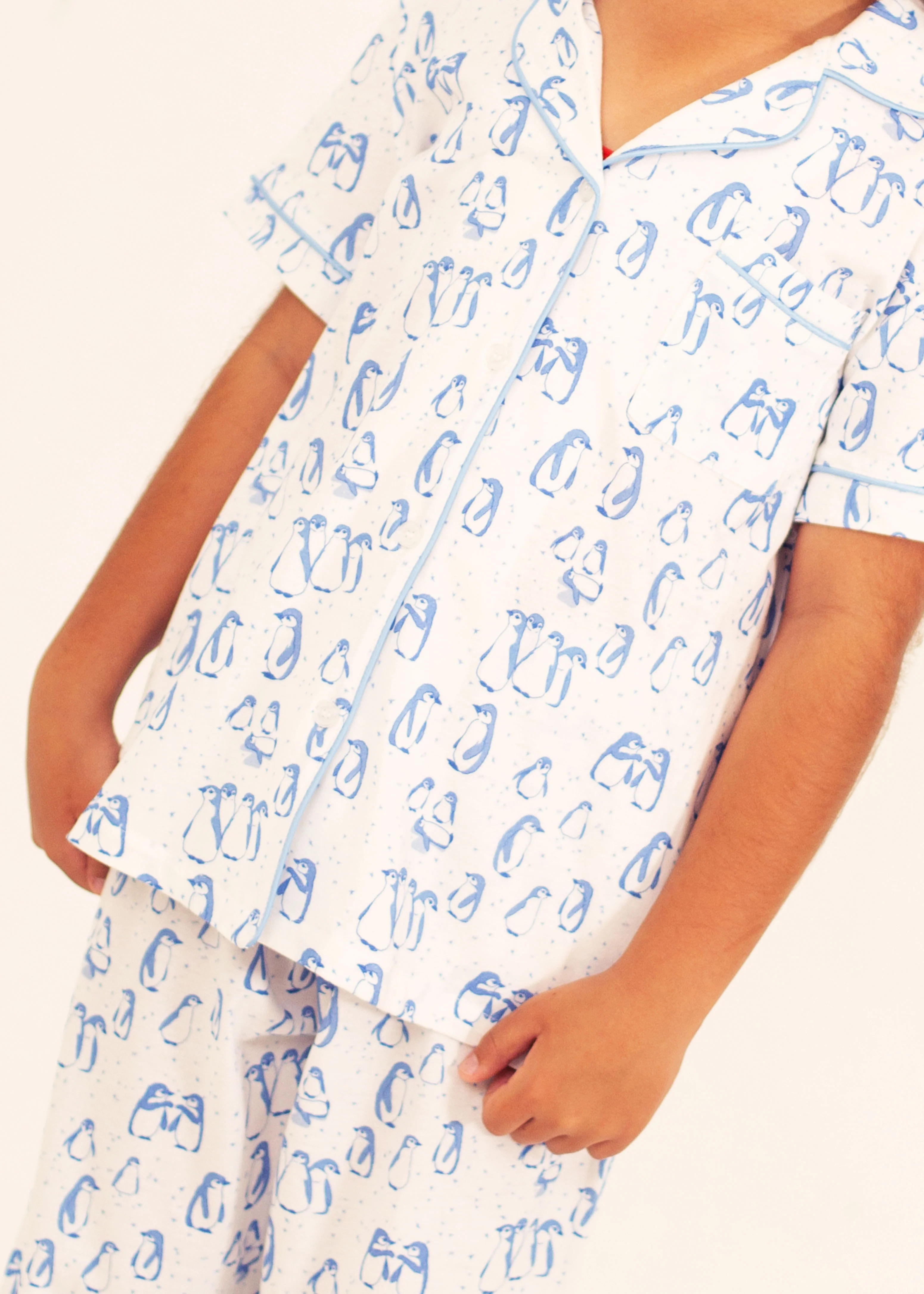 Girls - Penguin Pals Jersey Knit Cotton Short Top / Long Pants PJ Set
